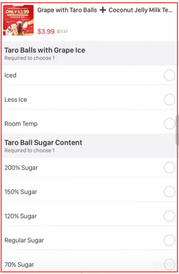 近日,蜜雪冰城洛杉矶门店正式上线当地外卖平台,一款特殊的糖度设置让网友围观。在芋圆葡萄等饮品的下单页面,除了正常糖、七分糖等常规选项,还出现了 120%、150% 乃至 200% 的超高糖度选择。