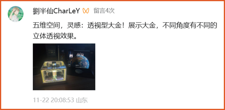 這個設計致敬了一部經典科幻電影中對於高維空間的表現,在設計者的想象中,該藏品在不同角度會有不同的立體透視效果,重點表達了對於宇宙空間邏輯的想象,突破了傳統紀念藏品的表現方式,是本屆徵集中最具“維度野心”的創意。