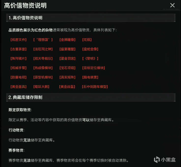 1.暗區新賽季典藏室已經確定大金存進去也可以取出來了,開啓典藏室需要3000w科恩幣具體可以存的大金如下: