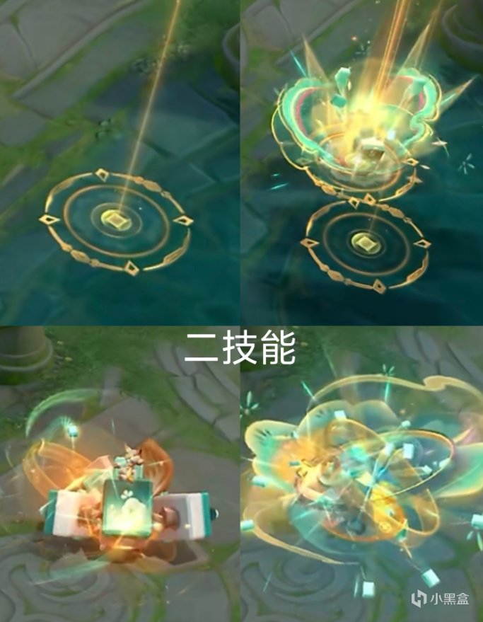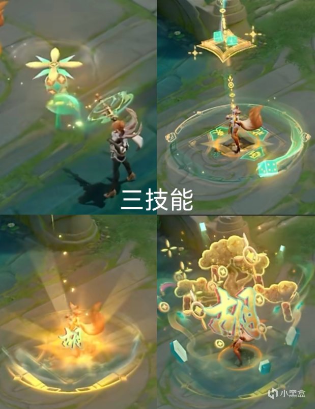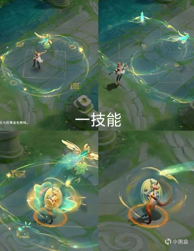 一技能掷出衔着 “發” 字的 “幺鸡”,攻击范围化作青金色大铜钱,二阶段还会一分为二扩大攻击范围。