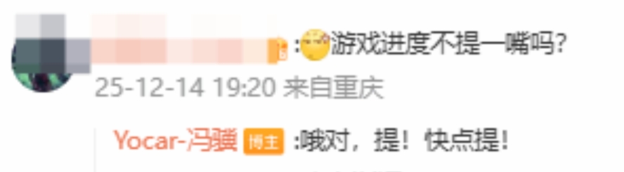 游戏科学创始人冯骥在12月14日通过微博与玩家互动,回应了玩家关心的游戏开发进度问题。针对网友询问“哈基米(指《黑神话:钟馗》)怎么样了”,冯骥直接回复道:“正在努力制作中”,确认了新作的开发状态。