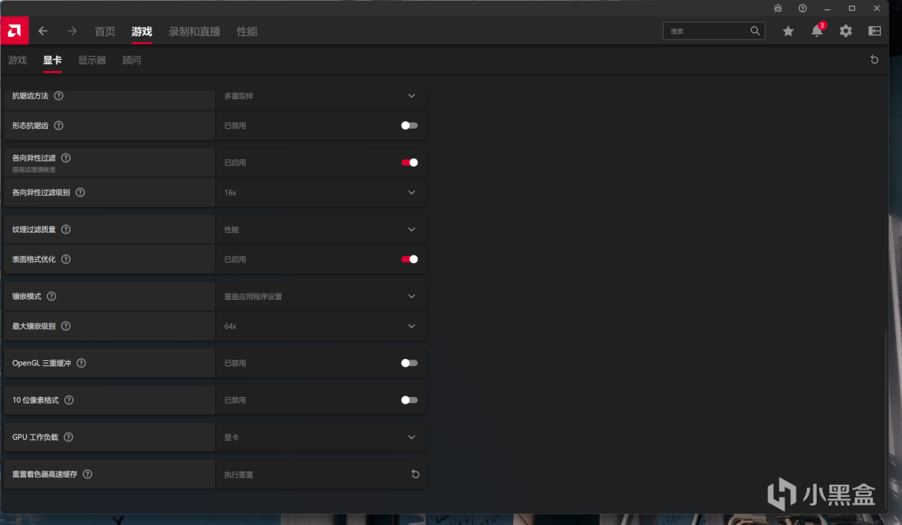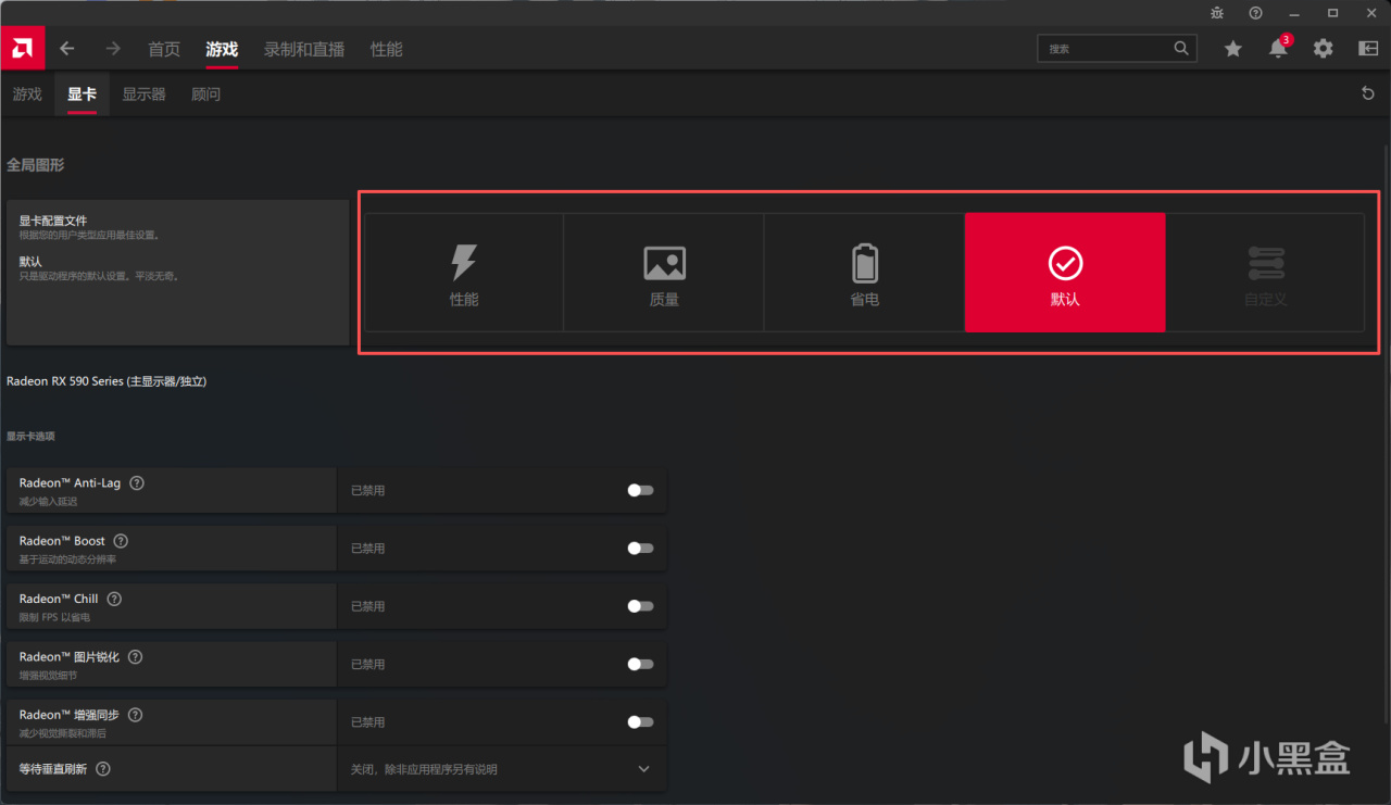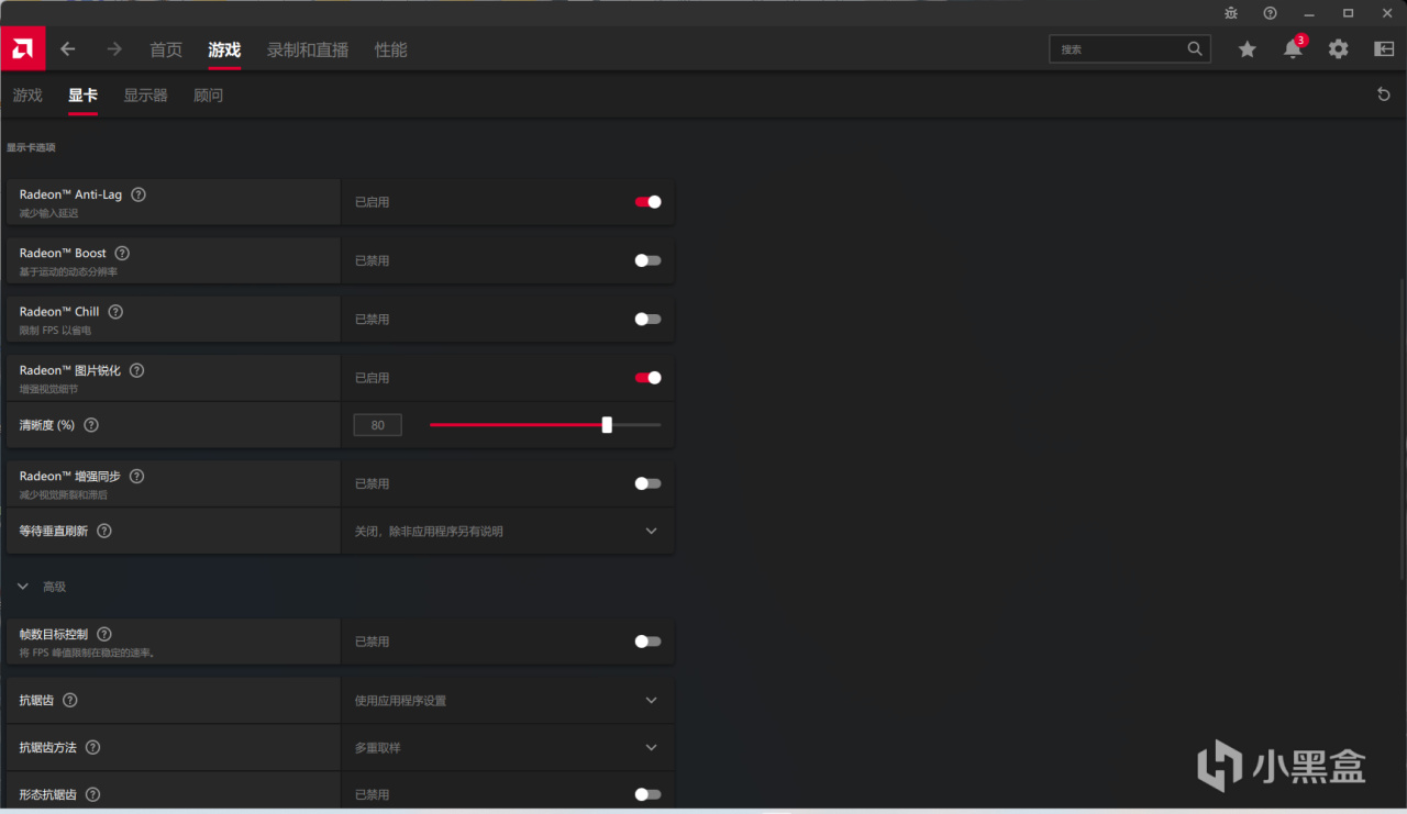Radeon Anti-lag 【启用】:减少输入延迟(实际无明显感受)。