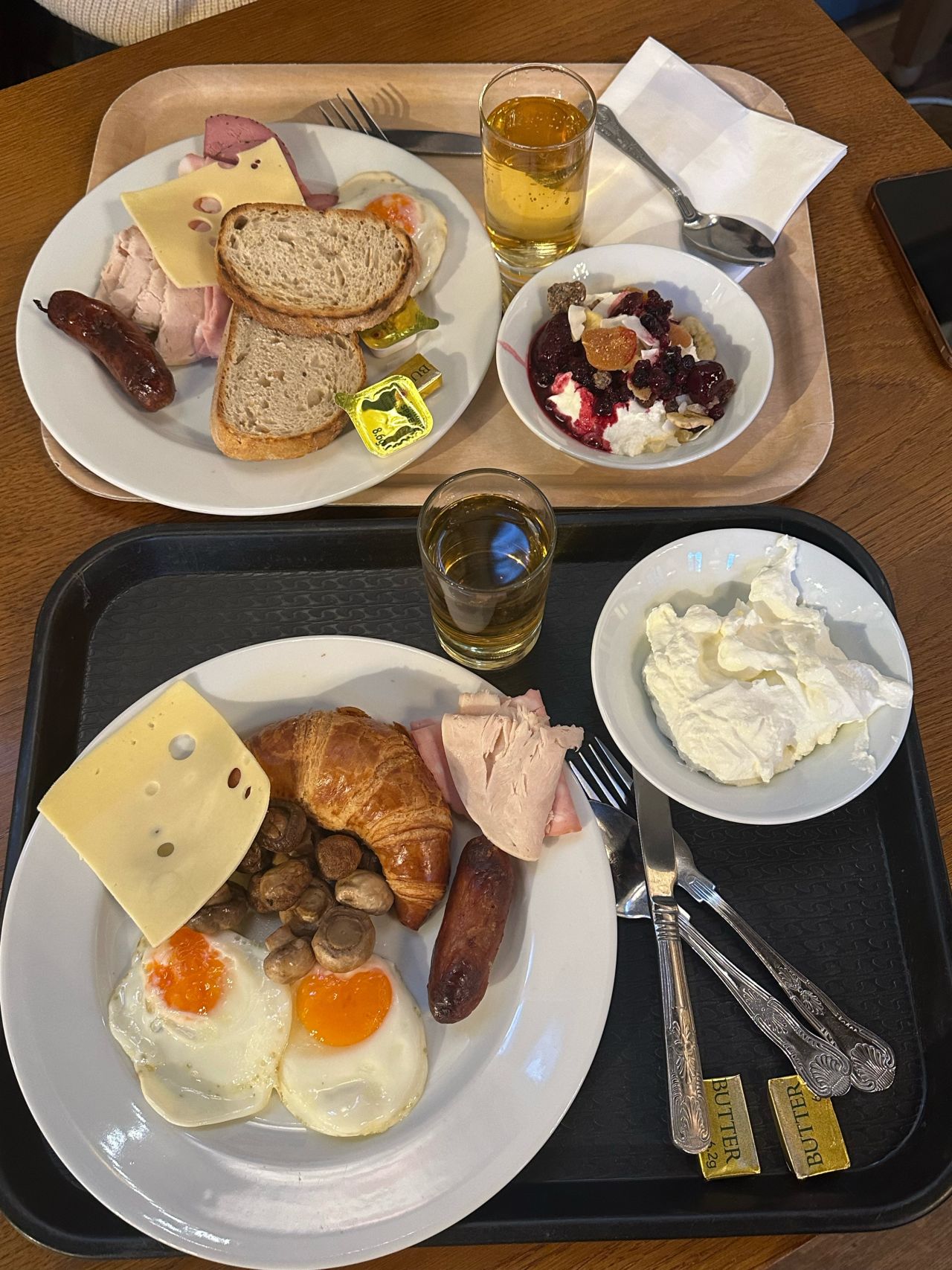 校内酒店早餐:酒店是剑桥校内的昂贵住宿,附赠的大礼堂早餐仪式感拉满;出门就是学院大草坪,满眼都是校园书香气息,仿佛瞬间代入 “剑桥学子” 的日常。