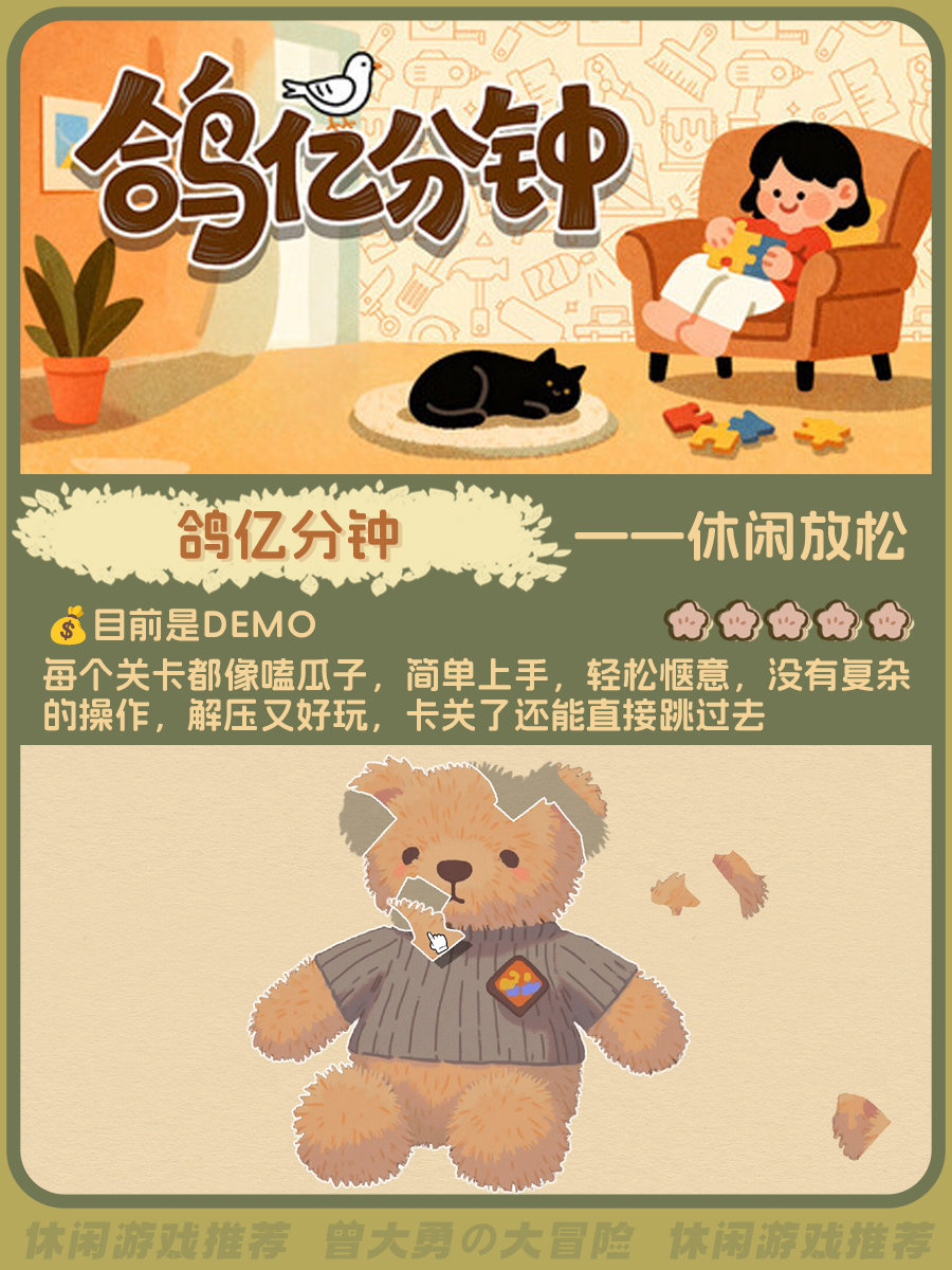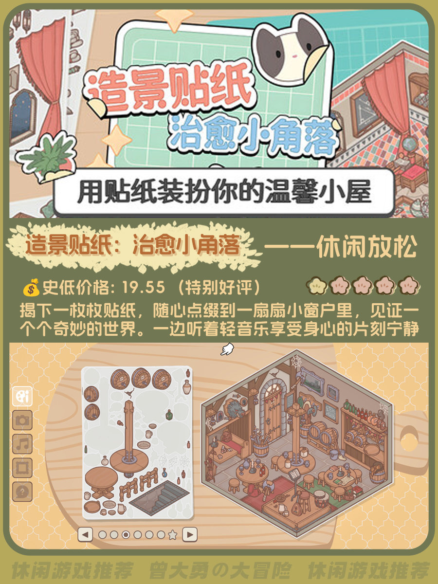 整理了一份不错的休闲的游戏,适合睡前玩一下,没有战斗不太费脑,目前汇总了十二款(感觉不错和盒友推荐就放进合集)