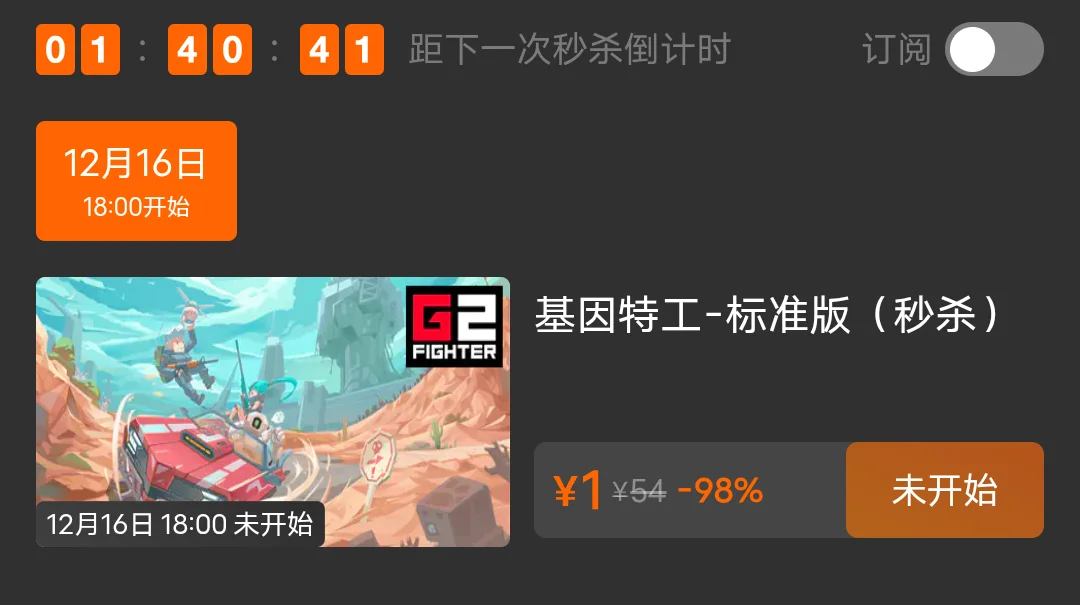 《基因特工》在今天晚上6点开启限时秒杀活动!仅需¥1