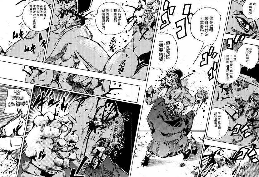 然而诚如是画了大半辈子漫画的荒木依旧有不擅长的地方,一是打斗分镜,荒木的分镜经常为了表现画面的张力改得晦涩难懂,说直白点就像画嗨了一样,上一格接不上下一格,需要大量脑补才能看得明白。