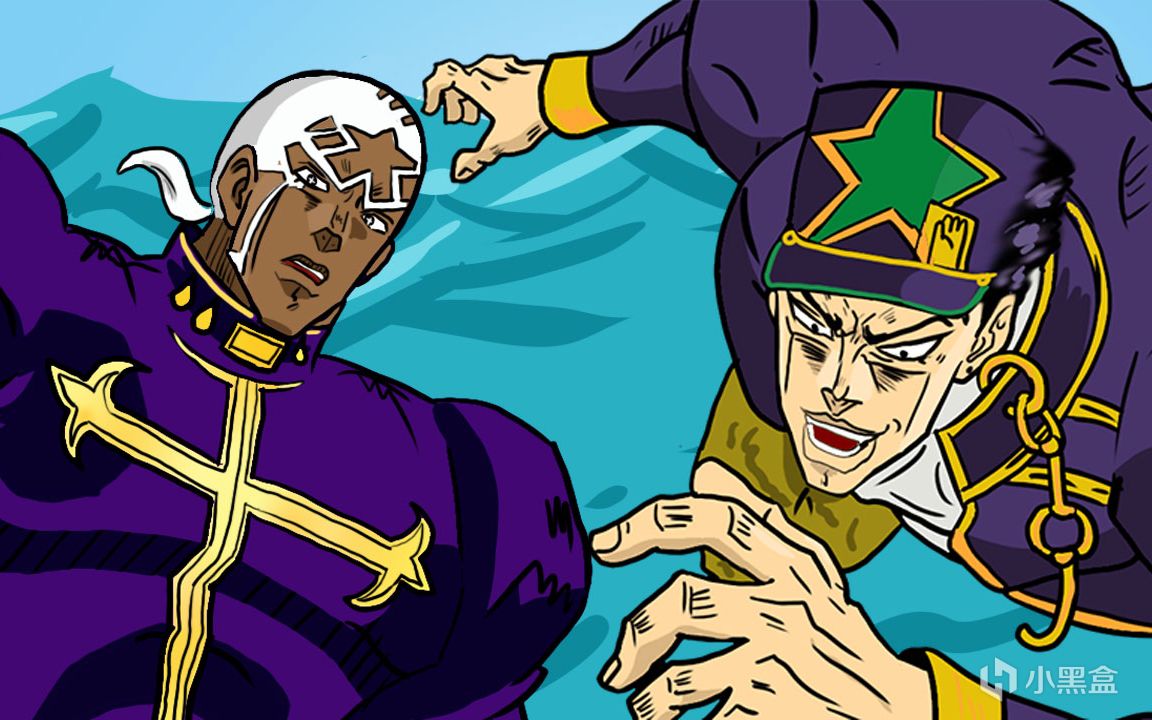第二个就是团战了,值得一提的是荒木并非完全不画团战,像是jo5打老板、以及jo7组团打天堂神父这些都是“团战”,但是荒木总是下意识的将这些团战切割成1v1的个人MVP回放,其他队友不是强制下线就是出来放个技能就没影了。
