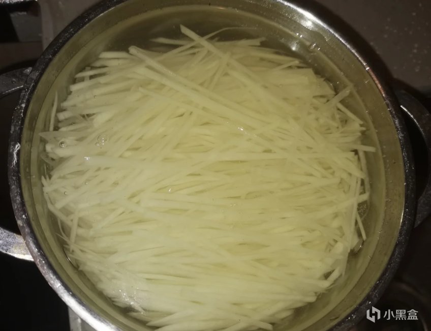5、土豆丝焯水后再炒,能去除多余淀粉,炒后口感更脆嫩、不粘连。