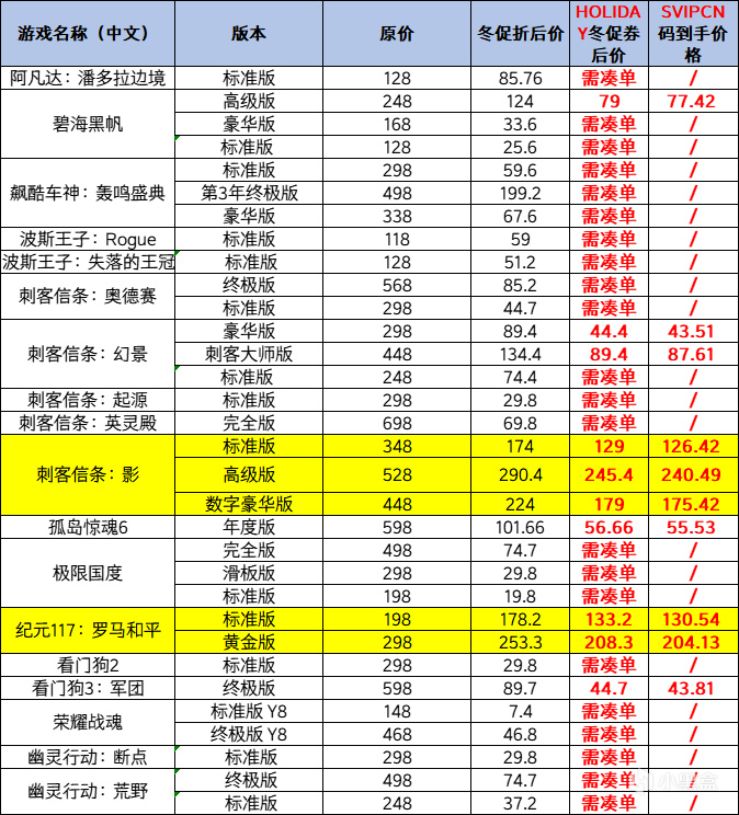 还有更多热门游戏折扣信息放下图表格里了,大家看看有没有自己喜欢的: