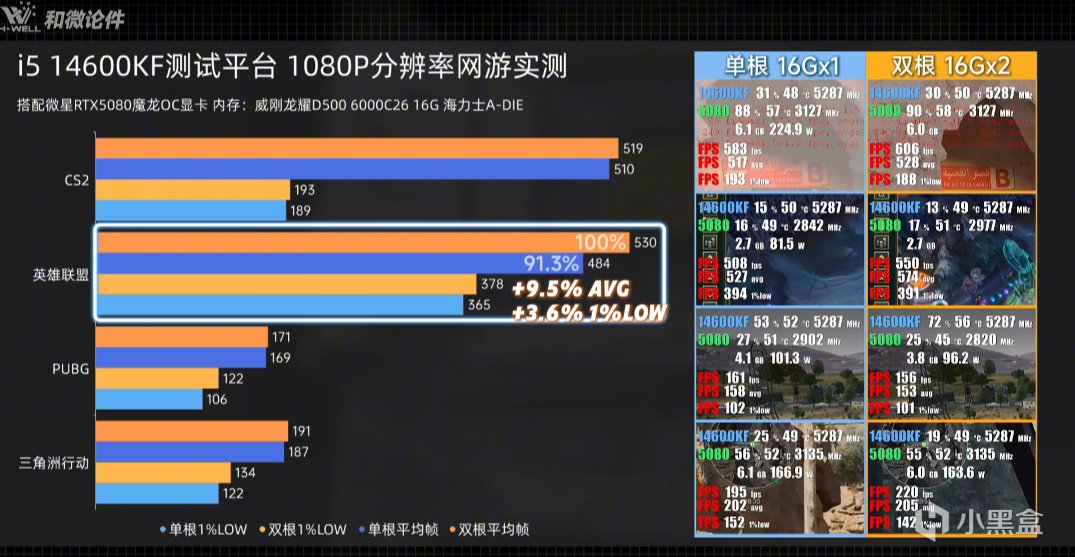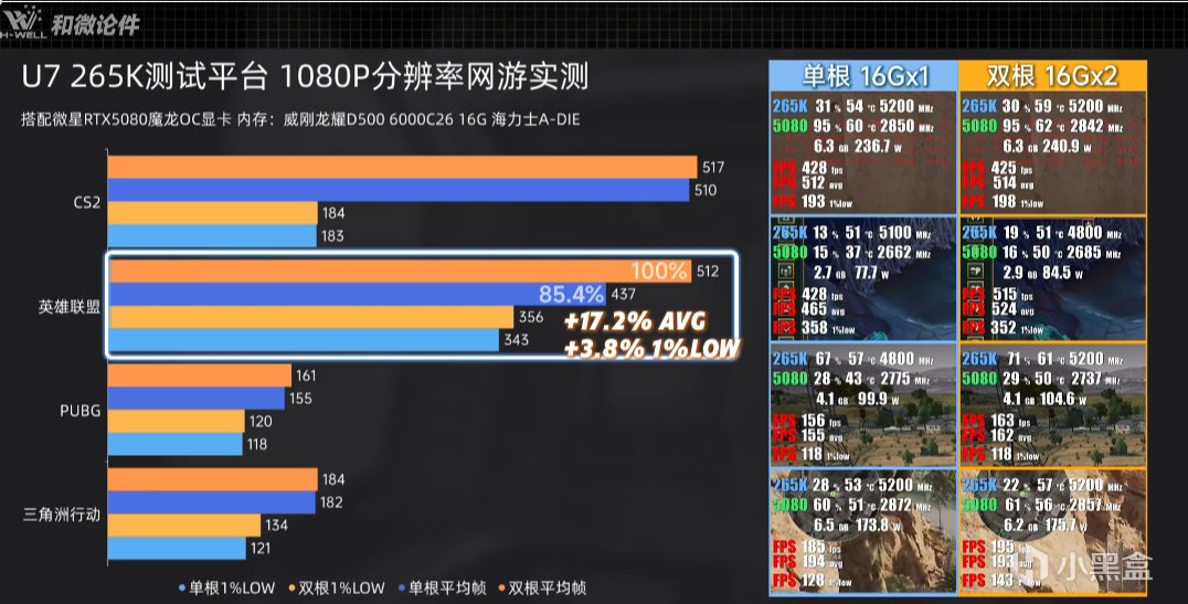 英雄联盟游戏中平均帧数跑的高,差距较大,单根为双根的85.4%;