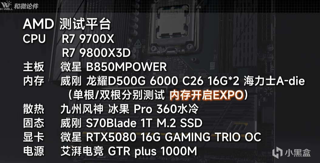 AMD 9000系锐龙和X3D测试平台所用主板均为超频与扩展性拉满的微星B850MPOWER,双内存插槽,8层PCB,4个M2插槽,颜值也非常顶。CPU分别为R7 9700X及游戏界1U之下的9800X3D。