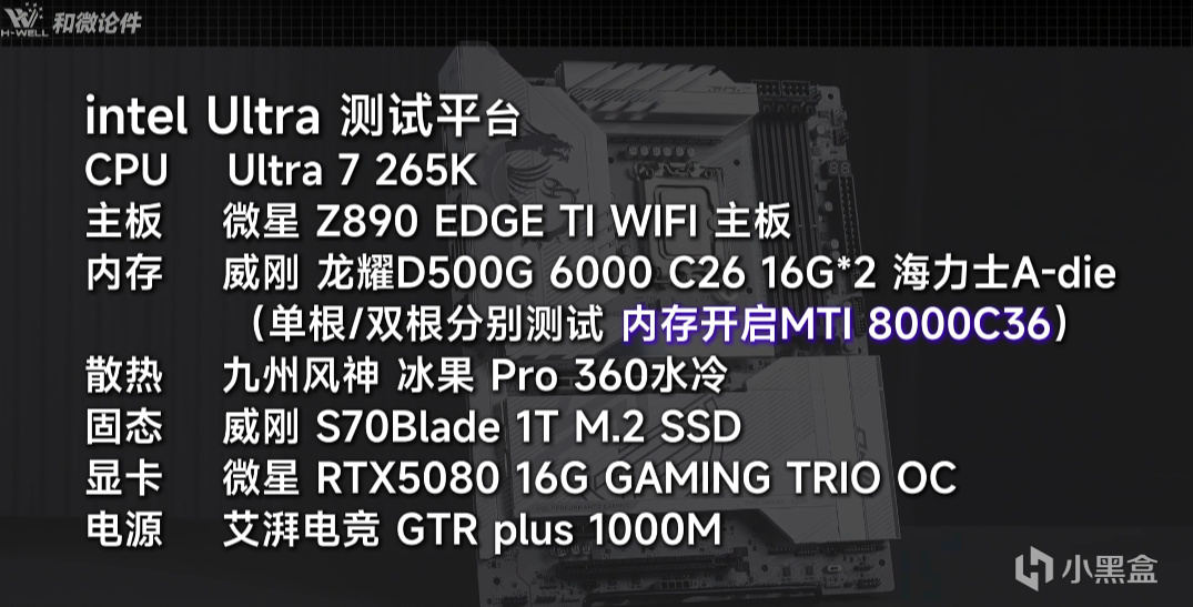 intel酷睿ULTRA测试平台选用的是U7 265K搭配微星Z890 EDGE Ti刀锋钛,16+1+1相90A超强供电及强悍的内存超频能力,官称可超9200mhz;14代酷睿平台选择了目前出货主力的i5 14600KF盒装,主板则是微星Z790M Gaming Plus WIFI D5小白龙,12+1+1供电带146绰绰有余,内存兼容性也还可以;