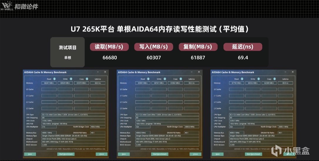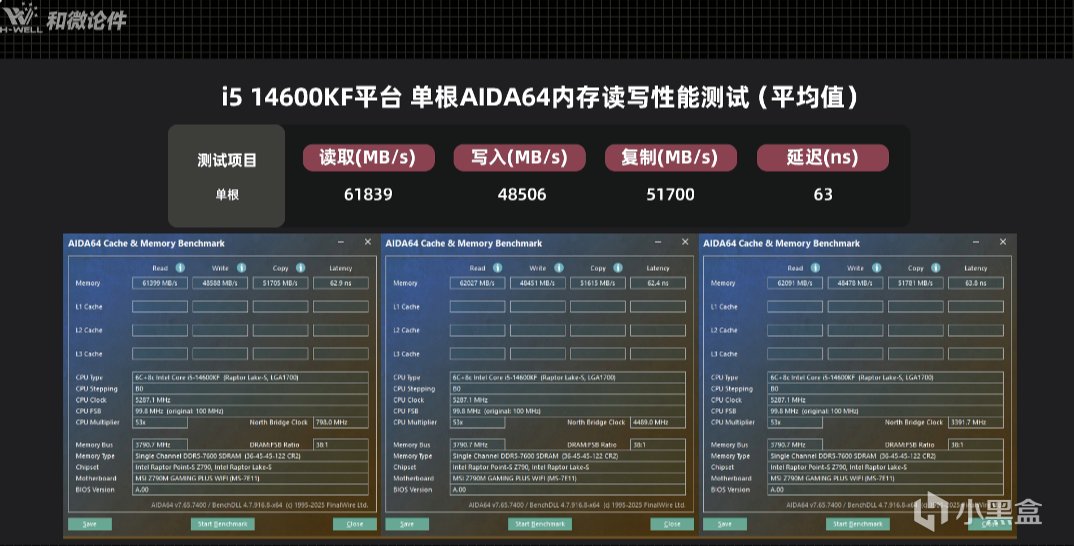 介绍完了测试平台,再来看下测试项目,先是AIDA64 Cache&Memory Benchmark内存读写性能测试,为结果尽可能准确,连测三次取平均值;