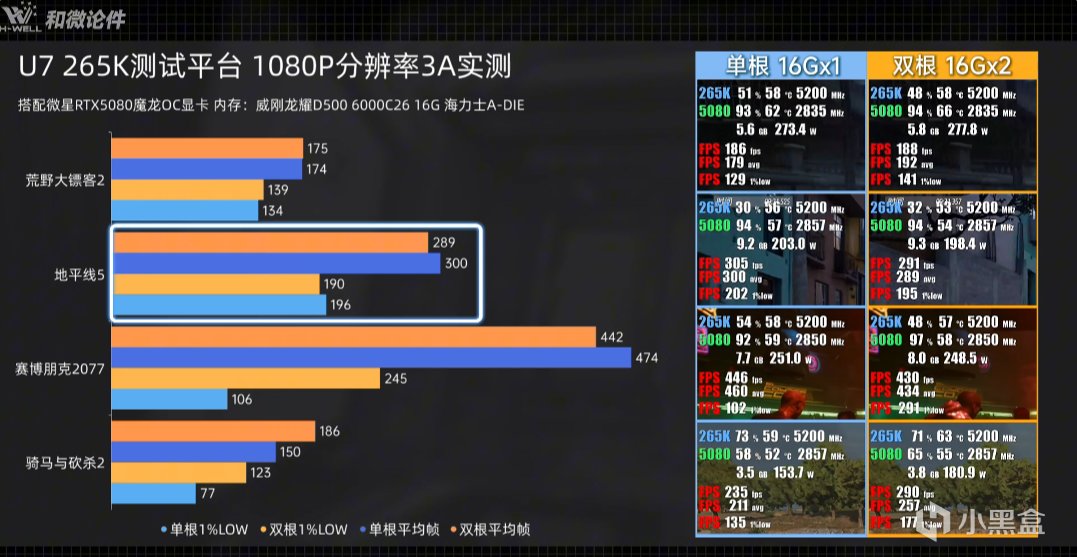 地平线5中单根帧数表现居然小超双根,单根较双根平均帧小小领先约3.8%,1%low帧小超约3.2%;