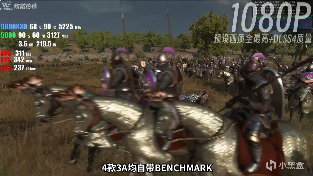 骑马与砍杀2,预设画质全最高,开DLSS质量;4款3A均自带BENCHMARK。