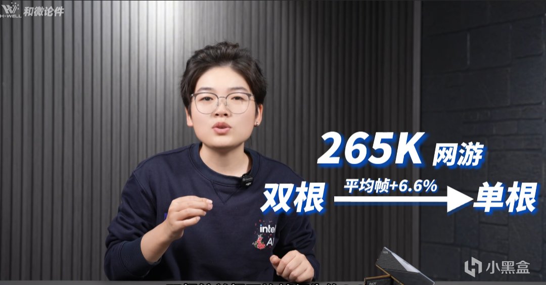 总结一下,265K平台在网游中双根较单根平均帧领先约6.6%,1%low帧领先约3.7%;由于赛博朋克2077的帧数表现相当奇怪,反复测试多次结果都是:双根平均帧是所有平台平均帧中最低的,但1%low帧却是最高的,且高得离谱,有没有大佬知道这是什么原因,欢迎大家在评论区指教讨论,所以将赛博朋克2077排除在外。265K在3A游戏中,双根较单根平均帧领先约4%,1%low帧领先约10%。