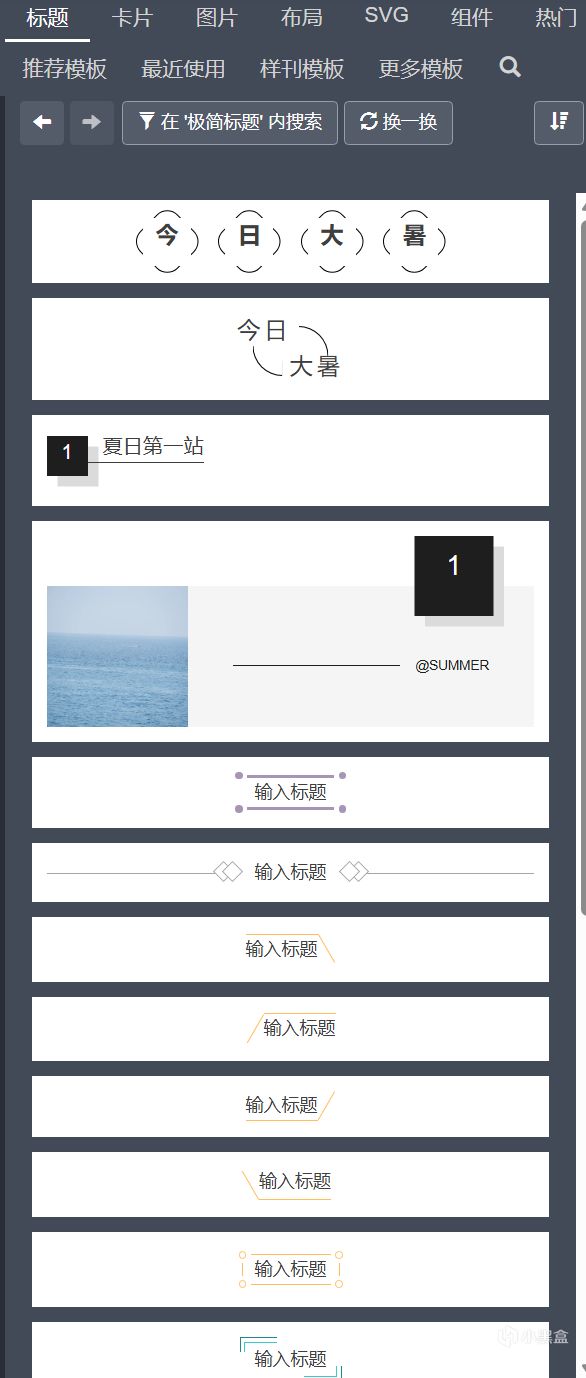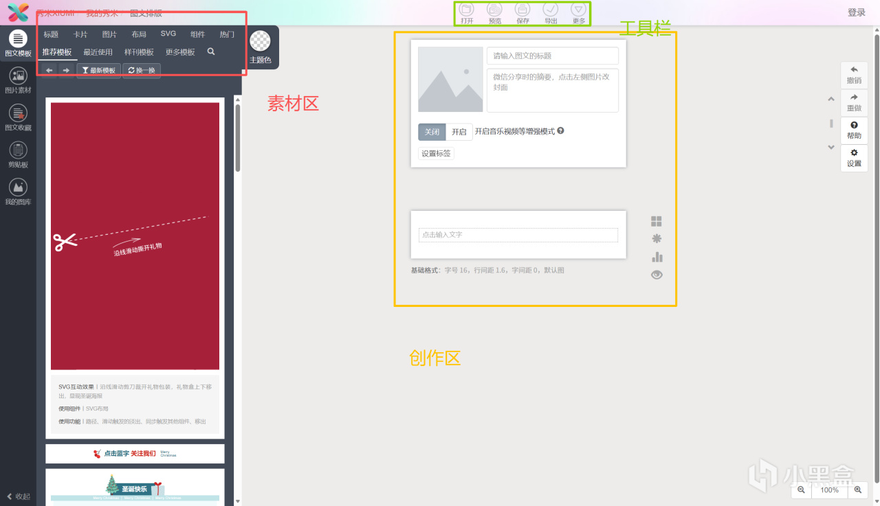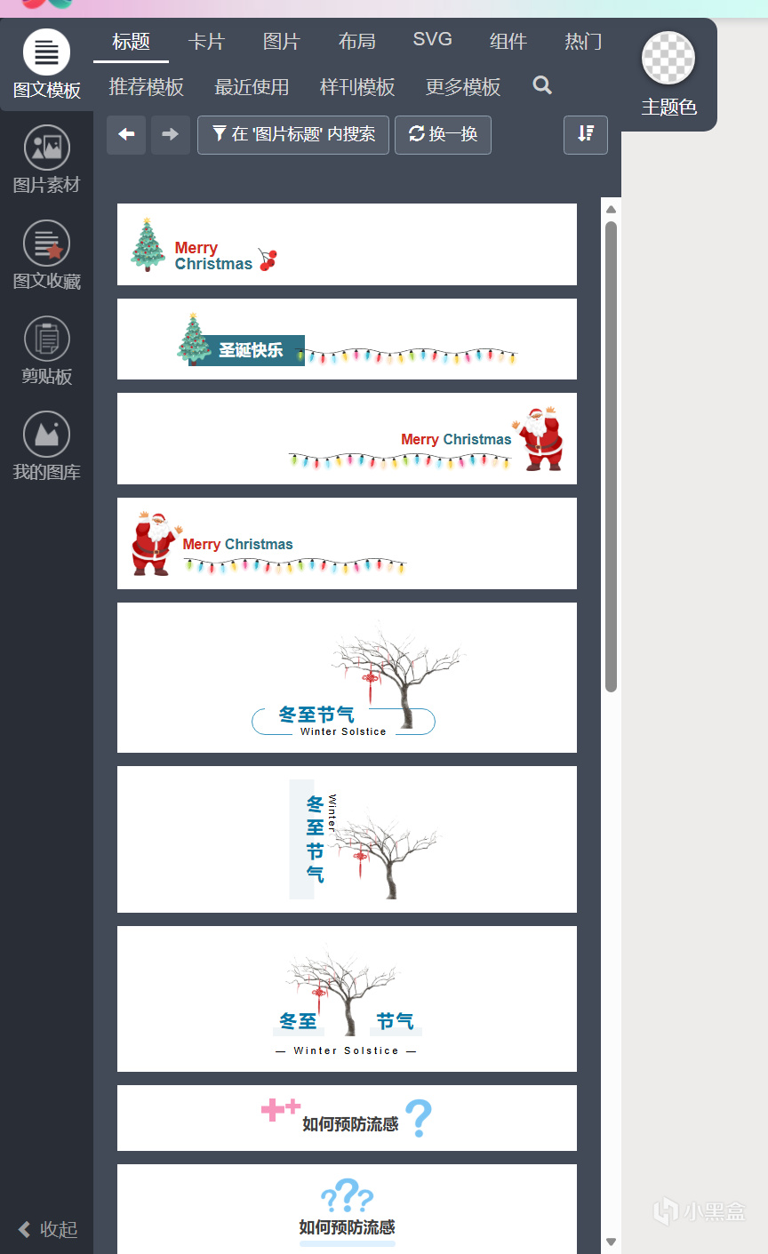 即本頁面提供素材的窗口,製作公衆號需要的幾乎所有板塊的素材你都可以在這找到。