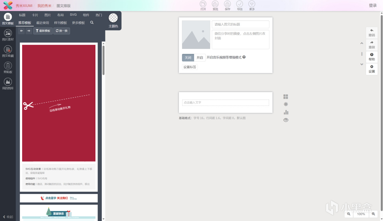 “秀米”常用於圖文排版,因可直接導入公衆號助手而被廣泛使用