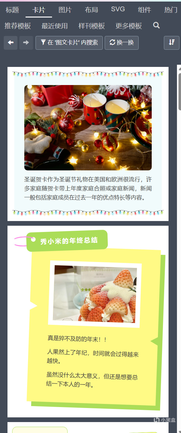 H5製作,即pro版圖文,可以互動的圖文,小黑盒的年度遊戲總結和很多APP的年度總結都是這種形式,雖然看着很高檔,但實際使用較少,本系列暫時不教。
