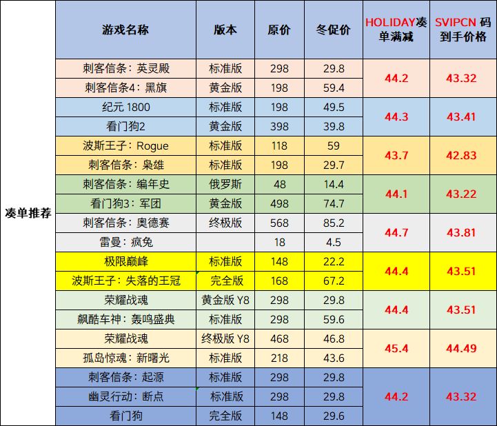 一些單個熱門遊戲折扣信息,大家可以自行湊單: