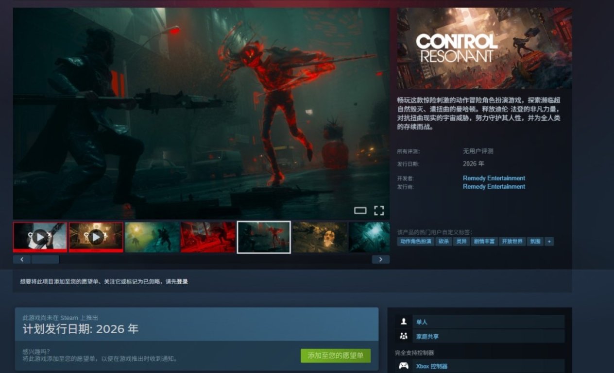 在TGA2025颁奖典礼上,Remedy正式公布了《控制》系列新作《控制:Resonant》。该作预计于2026年发售,将同步登陆Steam平台,打破前作PC版由Epic限时独占的策略。