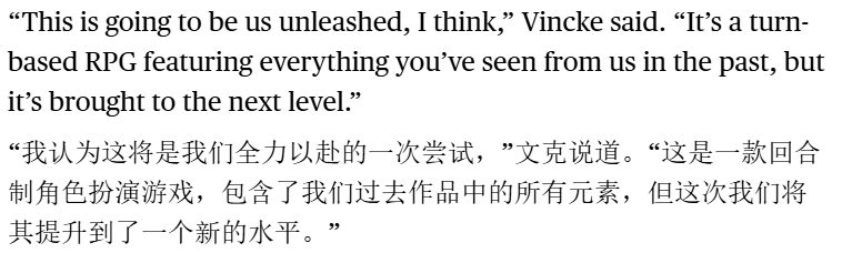 拉瑞安工作室近日透露新作《神界》詳情,確認遊戲將延續回合制角色扮演模式並公佈開發理念。首席執行官斯溫·溫克接受彭博社採訪時表示,本作將繼承工作室既定設計哲學並實現全面升級:"這是一款包含我們過往所有精華的回合制RPG,但將提升至全新高度。團隊將徹底釋放創作能量,直接延續拉瑞安傳統而非轉型新風格。"