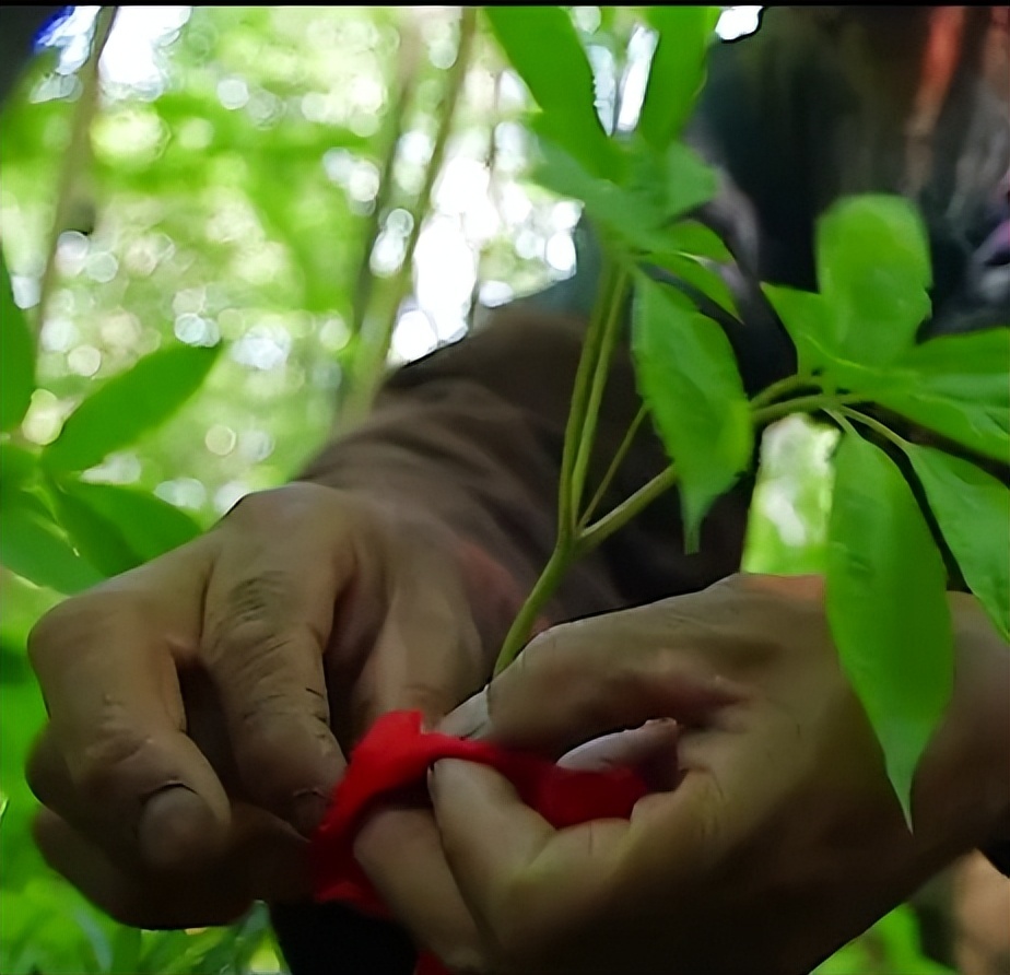 传说人参要系红绳后再挖掘,要不会跑掉。小时候不信,后来查了查原来是发现人参后,采参人恰好有事离开,所以系红绳以便过后回来容易发现找到。二是声明这棵人参有主了。其实人参不会真正“逃跑”,而是因环境变化(如低温)进入休眠,茎叶脱落导致难以寻找。古人误以为人参“跑了”,系红绳实为科学标记法。