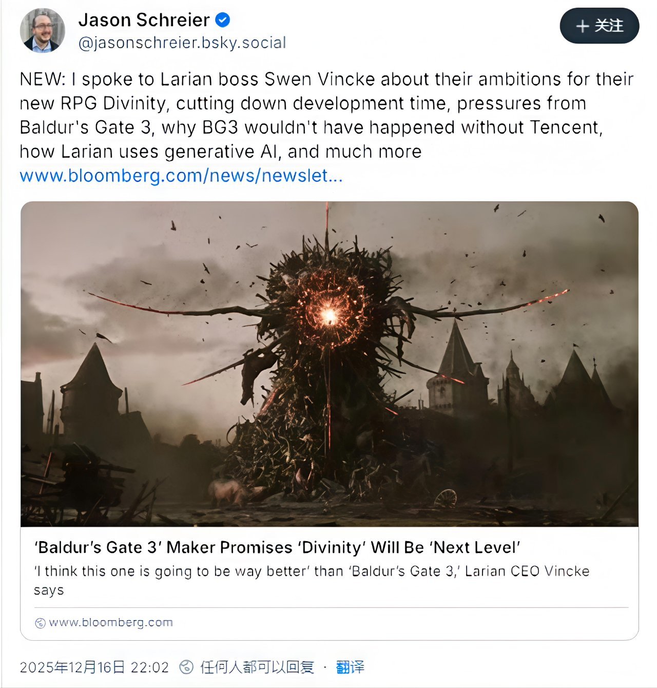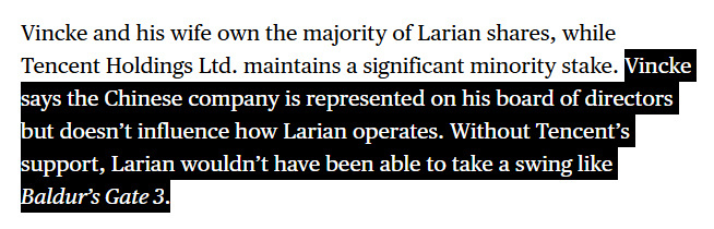 此外,采访中还披露了多项重磅信息:旗下爆款作品《博德之门3》销量已突破2000万份;为提升开发效率,工作室正积极运用生成式AI辅助创意探索、PPT制作、概念美术设计及占位文本撰写,但新作《神界》的所有内容均由团队亲手打造,不会纳入任何AI生成素材;腾讯虽在拉瑞安董事会占有席位,但并不干涉工作室日常运营,正是这份支持让《博德之门3》这样的大型项目得以落地。