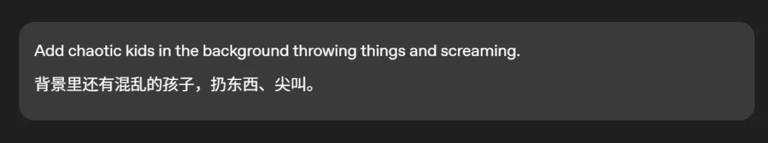 你可以先生成一个满意的构图,然后像甲方指点江山一样,指着画面说:这里给我加一堆乱跑的孩子,那里给我换成电影海报的字体,主角的衣服给我换成 OpenAI 的文化衫。