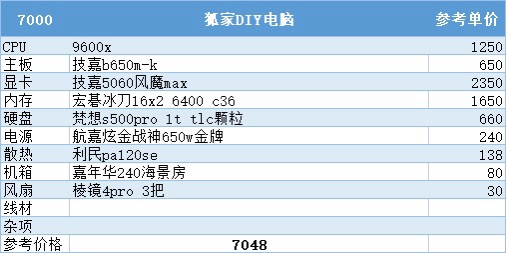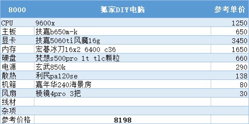到了这个预算终于可以上到一套能用的9600x加5060了,同样不是很推荐