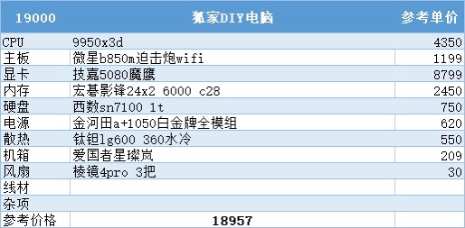 由于内存涨价目前在1w以下的预算中上am5平台的au性价比极低,不是很推荐大家选择