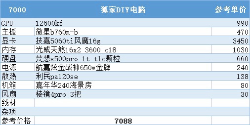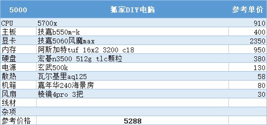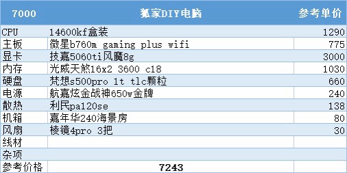 这个预算应该是大部分盒友选择的吧,上到5700x加5060可以爽玩2k