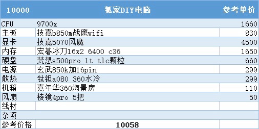 到了万元预算可以选择9700x加5070,比较平衡 稳定