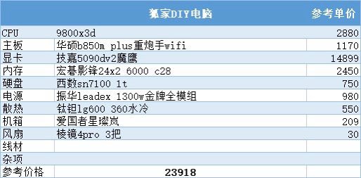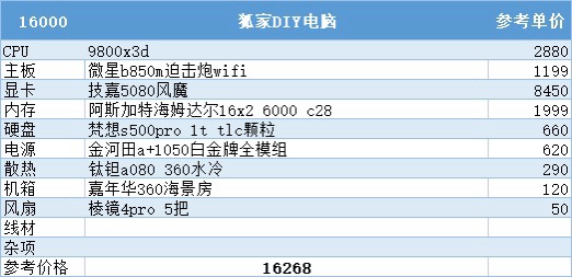 到了这个预算基本可以全部选择旗舰、次旗舰配件,无论是性能还是外观都拉满了