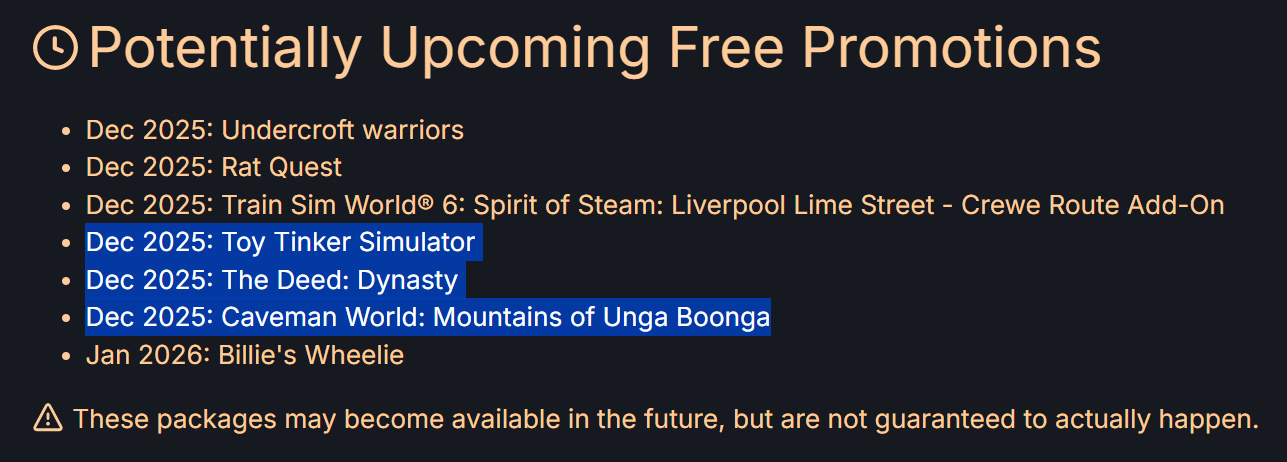相比于上次预告,这次年底赠送名单临时加了三款游戏