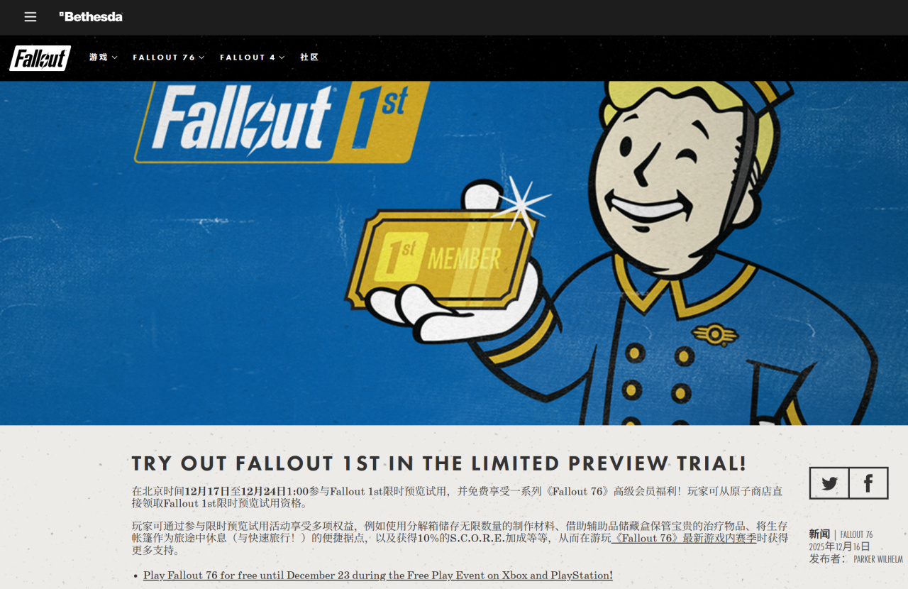 辐射1st限免和辐射76内部送,我是亚马逊刚领(限免快结束了),玩过的朋友可以领取两个装饰,也说说网络优化到底咋样?