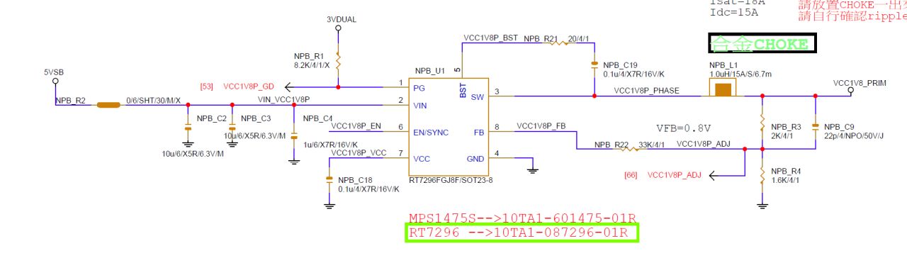 那么如果从外面直接施加一个电压给FB引脚,这个施加量不与Vout绑定,比如在Vout=1.8V,FB=0.8V时给其FB施加恒定0.2V,FB变成1V它就要降低Vout到(0.8-0.2)*(2+1.6)/1.6=1.35V,输出电压变成了1.35V这就是在不改变电阻的情况下修改输出电压的方式。