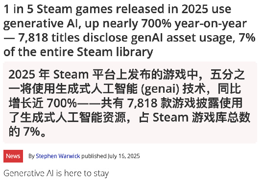 Steam帶有AI標註的遊戲數量同比暴漲超過700%的數字背後,是無數團隊把AI當成了降本增效的救命稻草,也是部分大廠試圖用AI重構生產管線的野心。
