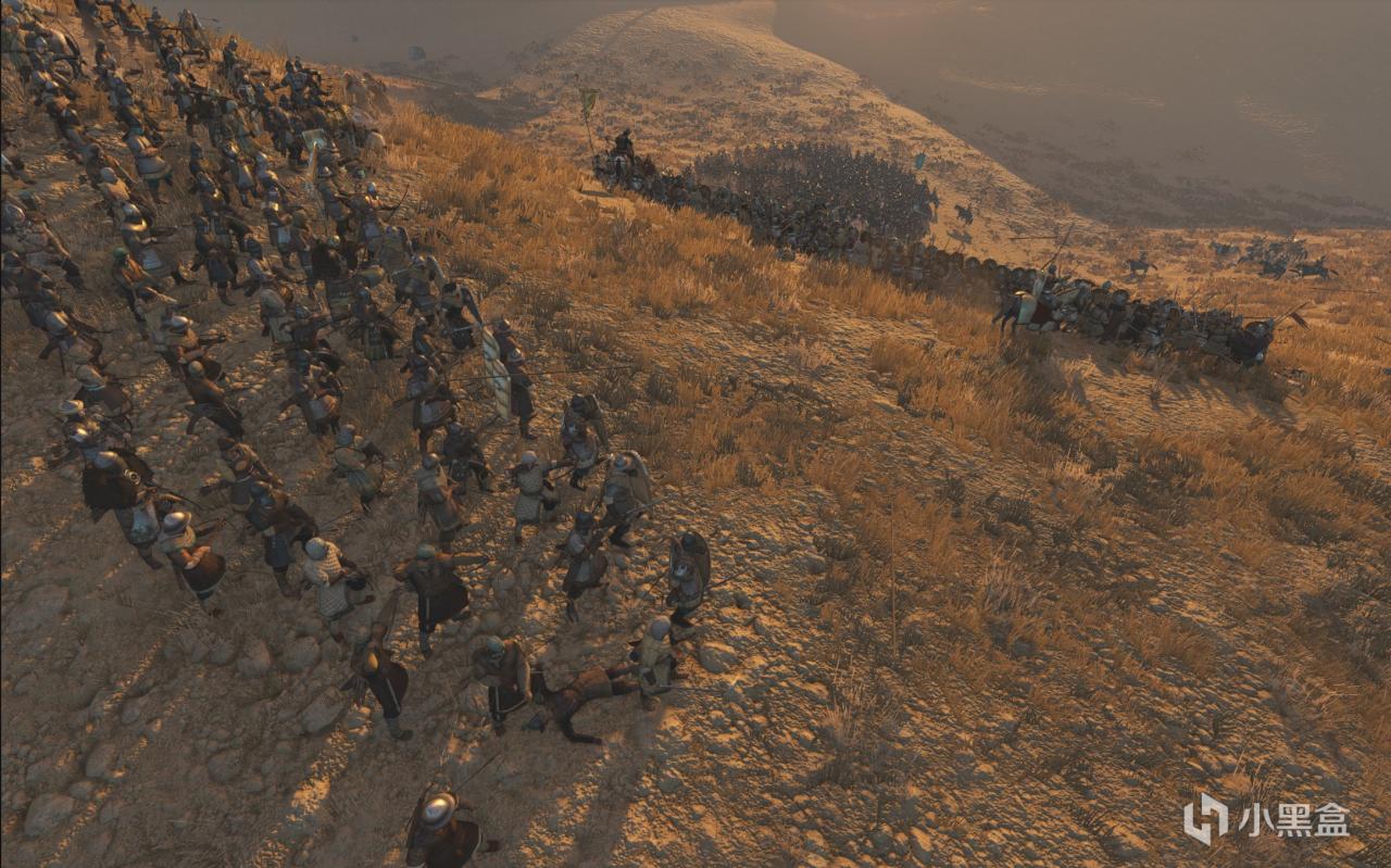 军团步+巴弓直接拉到地图边界蹲坑,但是在战斗快结束的时候被流矢射趴下了。F6居然选择让巴弓列阵和对面对射,人数劣势但是兵种优势你对射什么?.jpg