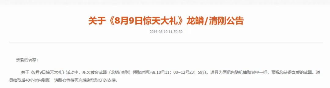 即使2016年CF同時在線人數破600萬,送的東西也十分簡陋,當時的描述是