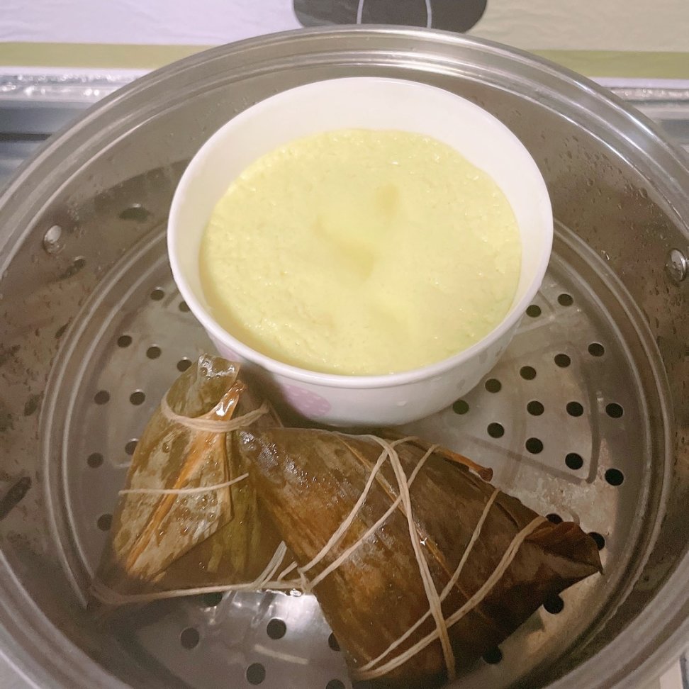 放進熬綠豆湯的鍋上一起蒸(我還順便蒸了兩個糉子配綠豆湯喝)