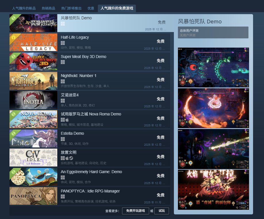 游戏登陆了人气蹿升的免费游戏榜第一,同时也是最热试玩版第四,成绩还算不错。