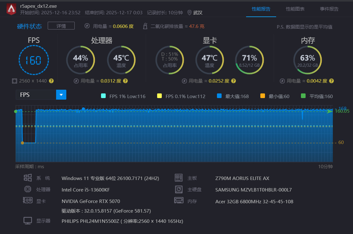 Apex也是一样的,基本可以顶到165Hz满帧数,但是显卡的显存还是8G。