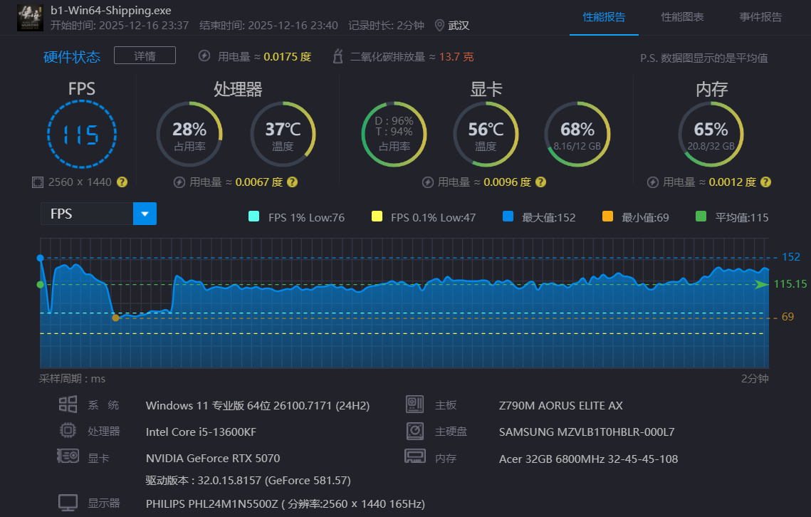 测试平台还是我老一套:13600KF + Z790小雕主板 + 6800C32的宏碁炫光星舰内存。