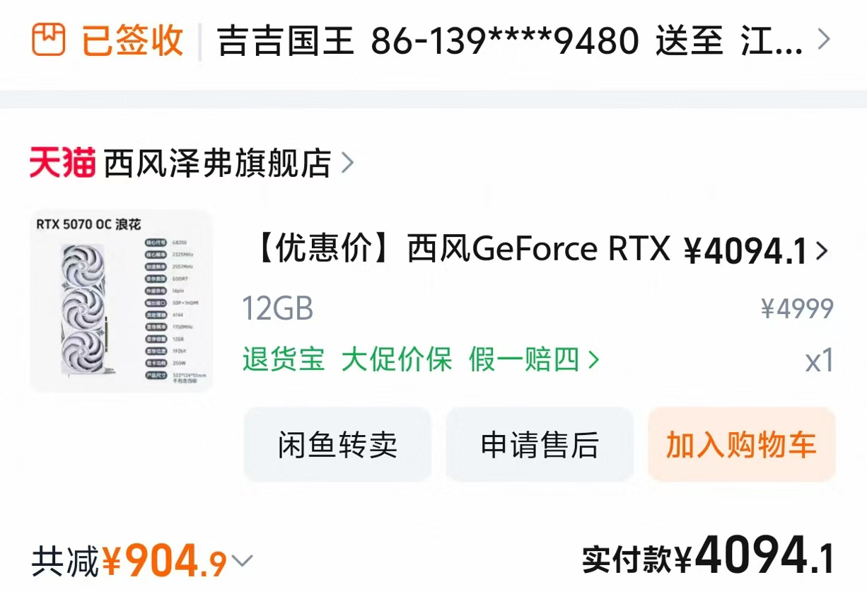 但现实是,现在5070破发了,4099就能拿下;而5070 Ti反而溢价,能干到快7K。这2000多块的差价一出来,5070瞬间就“眉清目秀”了,我觉得真挺香的。
