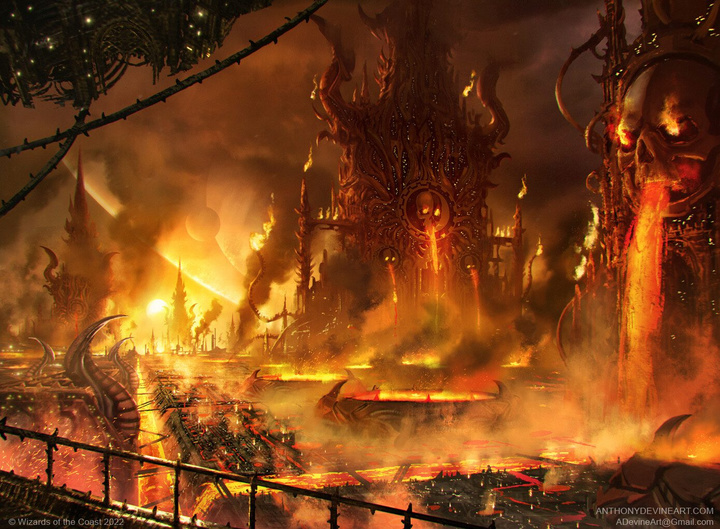 每处不祥的地狱景致皆会通向更阴森的下一个炼狱。在其核心处,恐虐自颅骨王座俯视疆土,驱使着麾下大军攻向任何可及的敌人—无论是同属混沌邪神的竞争者,抑或胆敢向战神发动必败之战的莽撞入侵者。