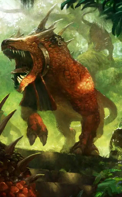 然而,并为只有人类会走上这条血染之路。尽管绿皮兽人有其独立神祇搞哥与毛哥,但残暴的它们同样可能获得恐虐青睐。凶猛的克鲁特、嗜血的拉克戈尔猎手,乃至任何智慧种族的战士皆可为颅骨之主效力。他们只需向血神献上鲜血与颅骨,便能在臂膀中获得其神力,在心中点燃其狂怒。