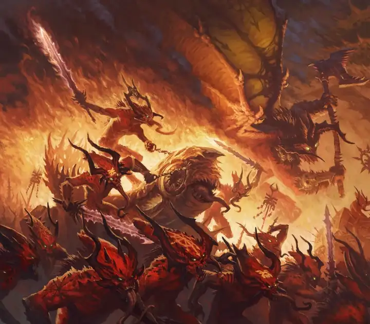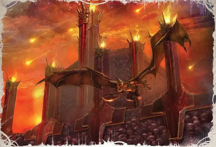 外壁与内堡间的天际,精英恶魔乘风巡弋,倾听着风中每一丝入侵的声响。鲜有势力能集结足够力量进犯这座黄铜堡垒,其守卫力量足以震慑除了狂妄到胆敢进犯恐虐堡垒的一切挑战者。即便是恐虐的混沌神祇兄弟,亦罕有胆量敢于直面此等凶险。