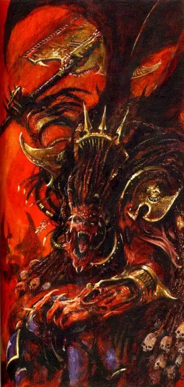 他们那位极度狂乱的军阀塔斯卡,自称"恶魔屠夫",在恐惧之眼内通过向数个效忠恐虐敌手的恶魔世界发起进攻而扬名。这位兽人军阀势不可挡,直至他的WAAAGH军团迫降于一颗恶魔行星,此星球归属于一位在恐虐麾下地位崇高的强大恶魔亲王,被称为"鲜血亲王"。