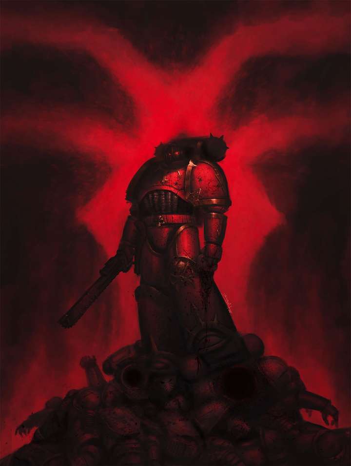 猩红天使安格隆——安格隆是吞世者叛乱军团的原体,于荷鲁斯叛乱的血腥年代堕入恐虐麾下成为了恶魔亲王。他在41千年初的第一次阿米吉多顿战争期间,最后一次集结其军团入侵实体宇宙,在后来狮王回归之战亦有出场。